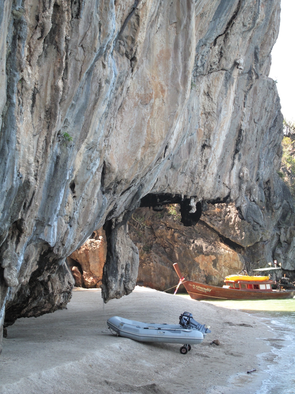 is a beautiful lagoon. On the north side there is a small opening in the island where you can take your dingy inside to explore the lagoon. As it seems with most places we visit, Phang Nga Bay is deserving of much more time than we were able spend there. There are just too many beautiful islands, caves, beaches and rivers to explore in Phang Nga.