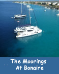 The next day the breeze picked up in the 25 to 30 knot range and we had a sporty sail the rest of the way to Bonaire. The best part was when we got into the lee of the low-lying island, as we still had 30 knots of wind but the seas were flat. We arrived off of the main town of Kralendijk just before sunset and found the last available mooring. Anchoring is strictly prohibited in Bonaire in order to protect the coral reef and they have installed about 40??? moorings for visiting boats to use. The water was so incredibly clear that I could practically inspect our mooring from the foredeck of Hokule’a, but I dove in any way to put on an extra line.