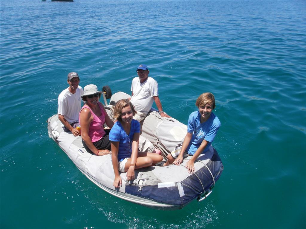 friends Jim, Emma, Phoebe and Drake on the boat Blue Sky. They left