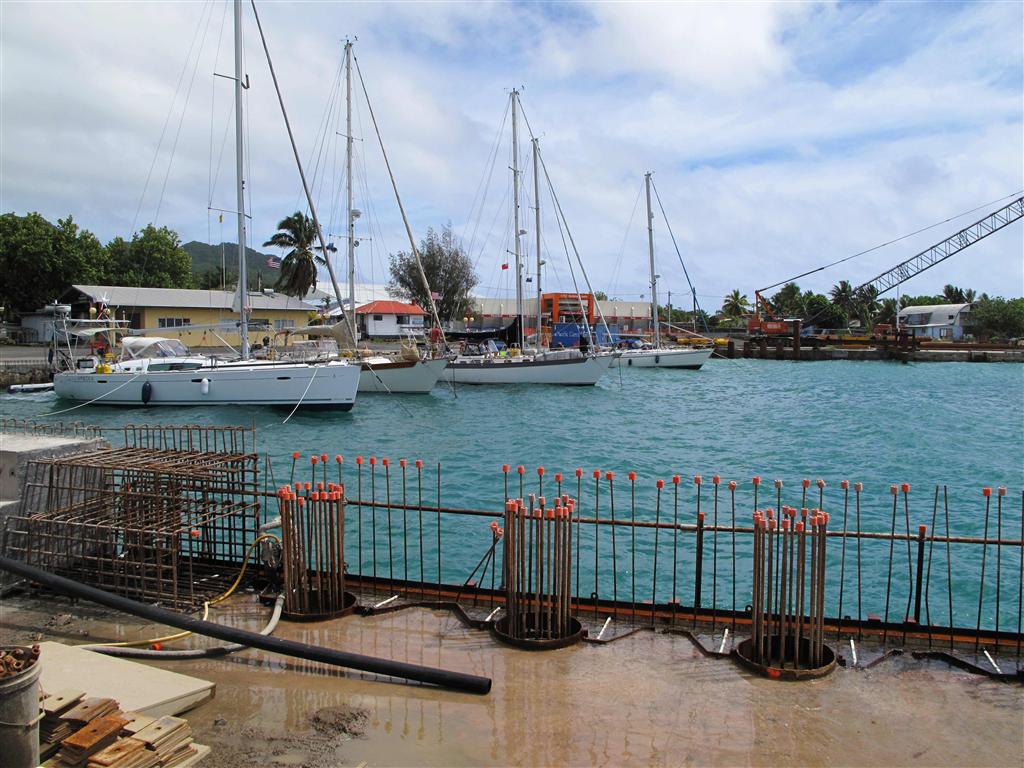What a dramatic change from all of our previous anchorages. Up to this point it has been palm trees, glorious sunsets, beautifully colored water, and white sand beaches. Well here in Avatiu harbor it is construction cranes, pile drivers (both vibratory and impact), jack hammers, concrete trucks, and lots of construction workers. It totally sounds and feels like I am back at work at LAX and in a twisted kind of way I really like it. Jackie however does not. But the beauty of the island and its people completely make up for the harbor issues (including the passage of a frontal system last night where got no sleep as 3 foot waves rolled through the harbor and crashed on the wharf some 15 feet behind the boat).