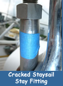 taysail stay had a cracked fitting. Fortunately Iwas able to have a replacement stay made in Singapore. Both the watermaker and the staysail stay were serious issues that made us thankful that we decided not go the northern route to South