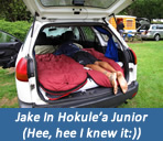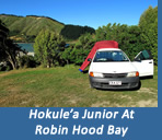 I slept like a rock, but at some point before dawn I was awakened by the sound of a large wave crashing on the beach and the feeling that my feet were under water. My first thought was that we were on the boat, had hit a reef and we were taking on water. It took me a few minutes to realize that we were actually in Hokule’a junior (the car), it was pouring down rain, and that my feet were wet because the roof of the car was leaking. This did not go over so well with Jackie, but with a trash bag and some duct tape we were able to divert the incoming water under the board that supported the mattress. This got us through until morning, but something tells me we won’t be sleeping in the car when we get to Kaikoura later today…..