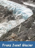 I didn’t bother to tell her that what she really should be concerned about is how quickly the glacier is moving. At anywhere from 4 to 18 feet per day, Franz Joseph Glacier is one of the fastest advancing glaciers in the world. This makes for a very dynamic environment on the glacier, one that changes daily and in some cases hourly. For this reason, you must have a guide to go on the glacier.