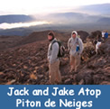 After doing a number of hikes rated as “moderate” in Cirque de Cilaos, Jackie was not so thrilled about doing the hike up Piton De Neiges with its 5,500 foot elevation gain and a rating of “very strenuous”. So she decided to take a bus (which apparently was pretty thrilling in its own right) back to St. Pierre to enjoy the comforts of Hokule’a while Jack and Zdenka (from Kite) and I huffed and puffed up the mountain. Actually the hike up to the Gite wasn’t all that bad. The trail was well maintained and the views were pretty amazing. We arrived at the Gite around 3pm and relaxed on a big wooden deck in the sunshine with cold beers. We were amazed that they had beers because every single thing here has to be flown in by helicopter. As I mentioned before the Gite is basically a hostel that sleeps 48 people in 6 different rooms/small buildings and has one large dining area. Fortunately we had made reservations to stay here months in advance because it was completely full. We were the only Americans staying here and we had a very fun dinner with lots of Rhum Agricole (a flavored rum made from sugar cane juice that seems to be served with every Reunion meal) and trying to speak French with our dinner mates. Fortunately their English was much better than our French.