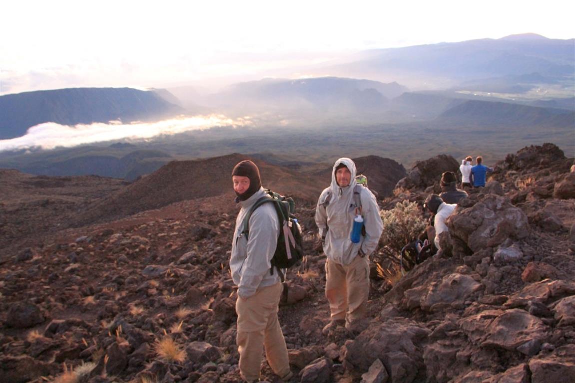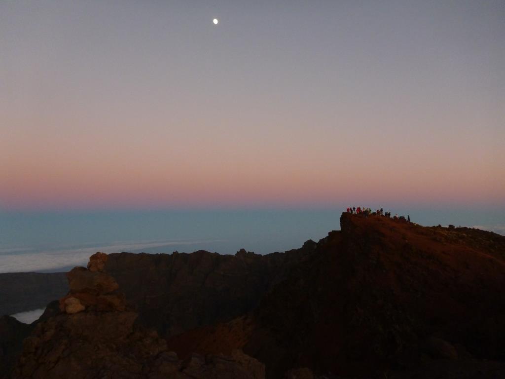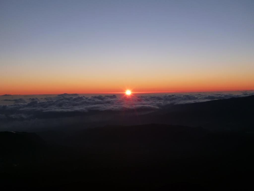 This morning at roughly 4 am we started hiking and the light of the full moon was so bright that we didn’t even need to use our flashlights. We made it to the summit about 45 minutes before sunrise and struggled to stay warm while we waited. We are fortunate to be able to see a whole lot of sunrises from the boat, but watching the sunrise from over 10,000 feet above sea level was truly amazing. Not to mention all of the incredible views of the island on the way down. If you ever visit Reunion this hike is a must do…