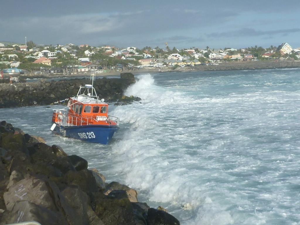 Just 2 days before there had been huge celebration in the marina for the christening of Saint Pierre’s new state of the art Search and Rescue vessel. Other Search and Rescue boats from around the island were there to spray huge arcs of water over the new boat as it entered the marina. It was a grand celebration with music, rescue demonstrations, and a host of speeches by politicians and other dignitaries. Unfortunately, the boat that is now being pounded against the breakwater is that same Saint Pierre Search and Rescue vessel.