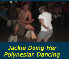 The overwhelming joy came for many reasons for me that night. It came from knowing that the five day crossing was now behind me, for knowing that Solstice and I were safe and sound in the harbor, that John was arriving in a couple of days, that we were on the wonderful Island of Rarotonga. But mostly it came from watching Jake and Jackie trying to be Polynesian.