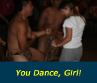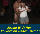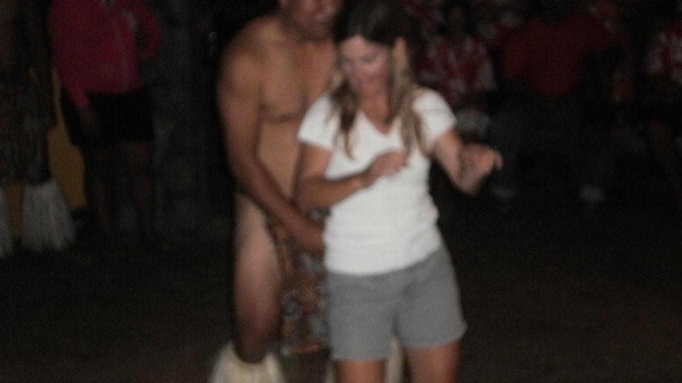 The lead male dancer howled again and barked out instructions. He came forward and grabbed Jackie by the hand. She resisted at first but he was persistent and pulled her up to the dance floor. I was happily surprised too when the top woman dancer came and grabbed Jake by the hand. Jake resisted more but the island woman also prevailed. Other dancers and pulled other people to the floor and each took their turns in the spotlight dancing to the mirth and merriment of the crowd. In the end their was a big crescendo and the male dancer with Jackie and the woman with Jake danced together for all of us. It wish everybody that knew Jake and Jackie could have been there. I have not laughed so hard in a very long time. I stood up to get a better view and realized I had a camera in my pocket. I quickly pulled it out and through tears of laughter I tried take pictures in the dark bar. The pictures are a bit blurry but the smiles on Jake and Jackie’s face are priceless.