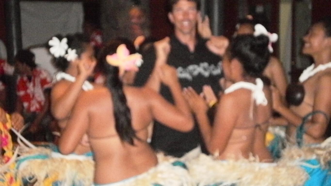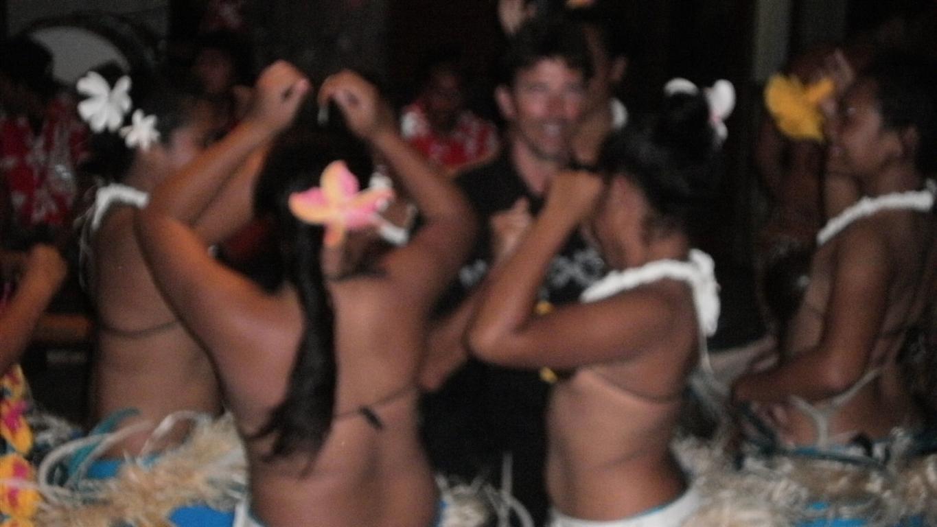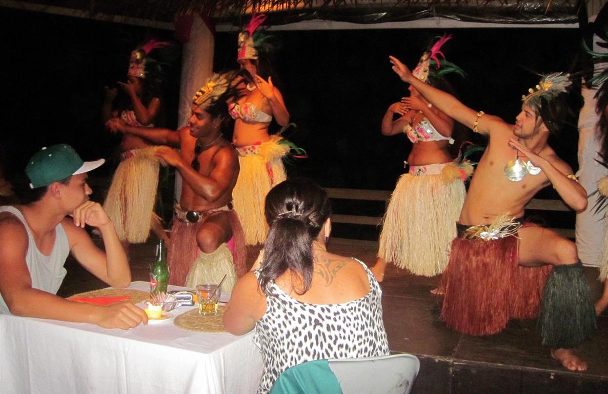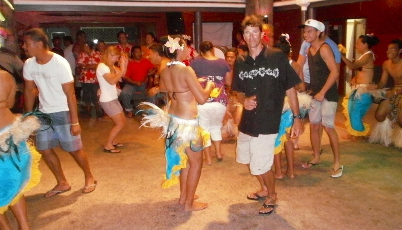 Inevitably the dance floor gets filled with white people making fools of themselves trying to mimic the movements that these wonderful dancers perform. People find themselves laughing as they fumble through the movements and all have a great time. I was happy to see that at the crescendo of this show the dancers began to pull other islanders out of the audience. To my surprise, the local islanders from the audience looked as uncomfortable and ridiculous trying to dance the traditional dancing as a tourist at the fancy resorts. So much for the idea that all Polynesians are able to dance that way. The audience participants laughed as well as they fumbled through the movements.