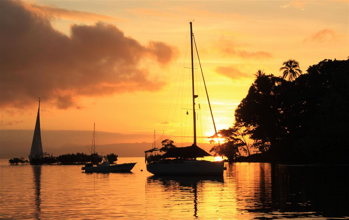 u. I left two days ago on the 4th of July with friends from other boats and together we headed out to explore new islands for all of us. So far it has been incredible. Just tonight I watched an amazing sunset alight a softly clouded sky with purple, red, teal and black that all shimmered down a perfect reflection upon a flat calm sea. There are only four boats in this remote anchorage of the Fiji island of Gamea. We were all exhausted from the long crossing today so we all stayed aboard to recharge our batteries and as the sunset I looked around the anchorage and all of us on our own boats stood there in silence taking in the sunset and the beauty that surrounds us. It was breathtaking.