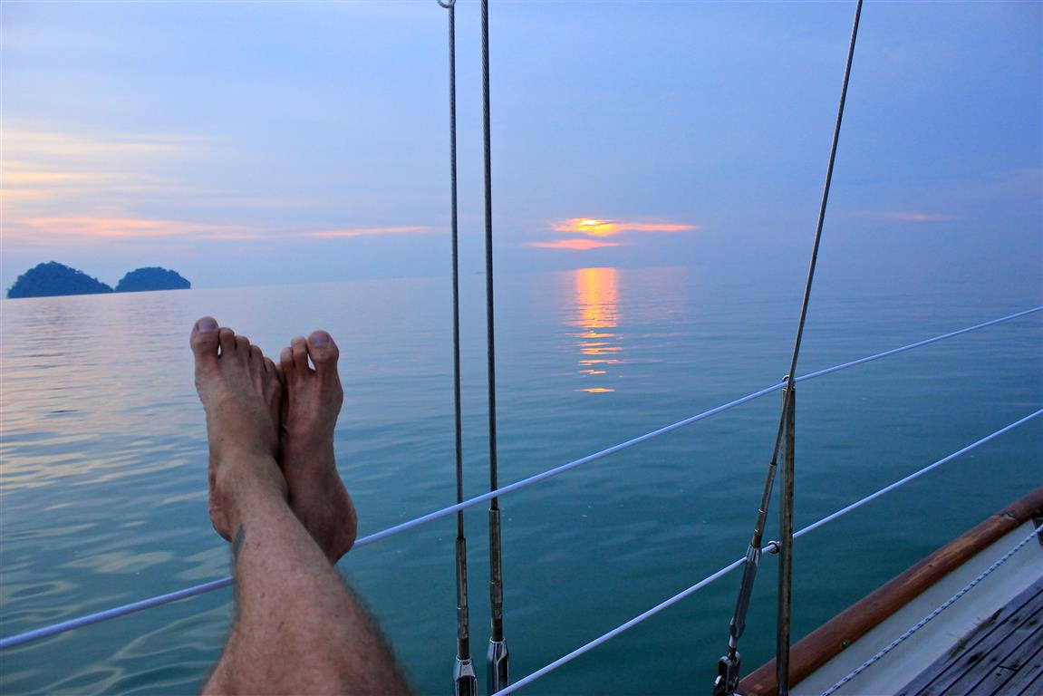 Totem and Solstice headed to the same island where I was last anchored with Hokule’a, Kite and Shango. At that time we all celebrated over the radio our last anchorage in Malaysia before going into the marina. After the marina stop we were going to head to Indonesia together. I remember sitting there that night thinking that this would be my last Malay anchorage. I was so happy to have been done with traversing through the Malacca Strait. I was done with dodging fishing boats, nets, ships, garbage, thunder and lightning and poorly charted waters. A few months later I now dropped the hook almost exactly where I had last pulled it up. I went up to the bow and sat down to watch the sunset. The next morning I’d head back into the Malacca Strait. A stretch of water that I thought I had left astern. It’s one of the busiest waterways in the world. What I thought was behind me now loomed in front again. A whirlwind of feelings arose that surprised me.