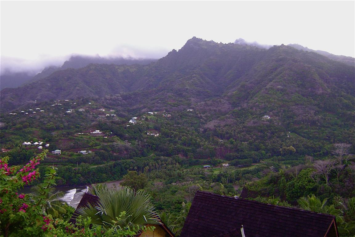 morning cloak of mist that hung over the western end of Hiva Oa on