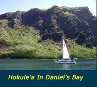 Over my shoulder Hokule’a was in my wake. I should grab the cannon, turn Solstice around and give them a broadside.